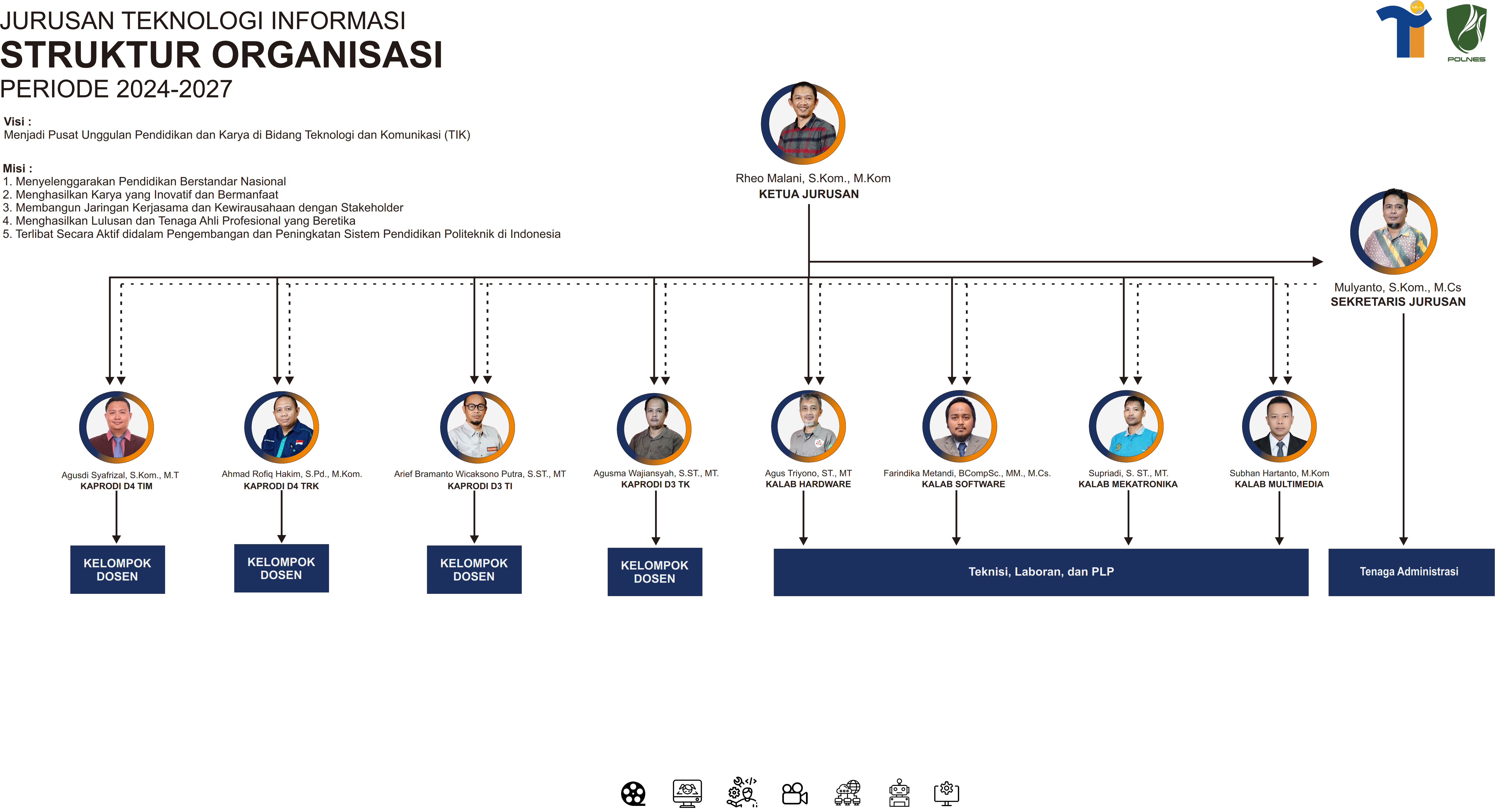 Struktur organisasi Jurusan Teknologi Informasi Politeknik Negeri Samarinda yang mendukung kolaborasi dan profesionalisme.